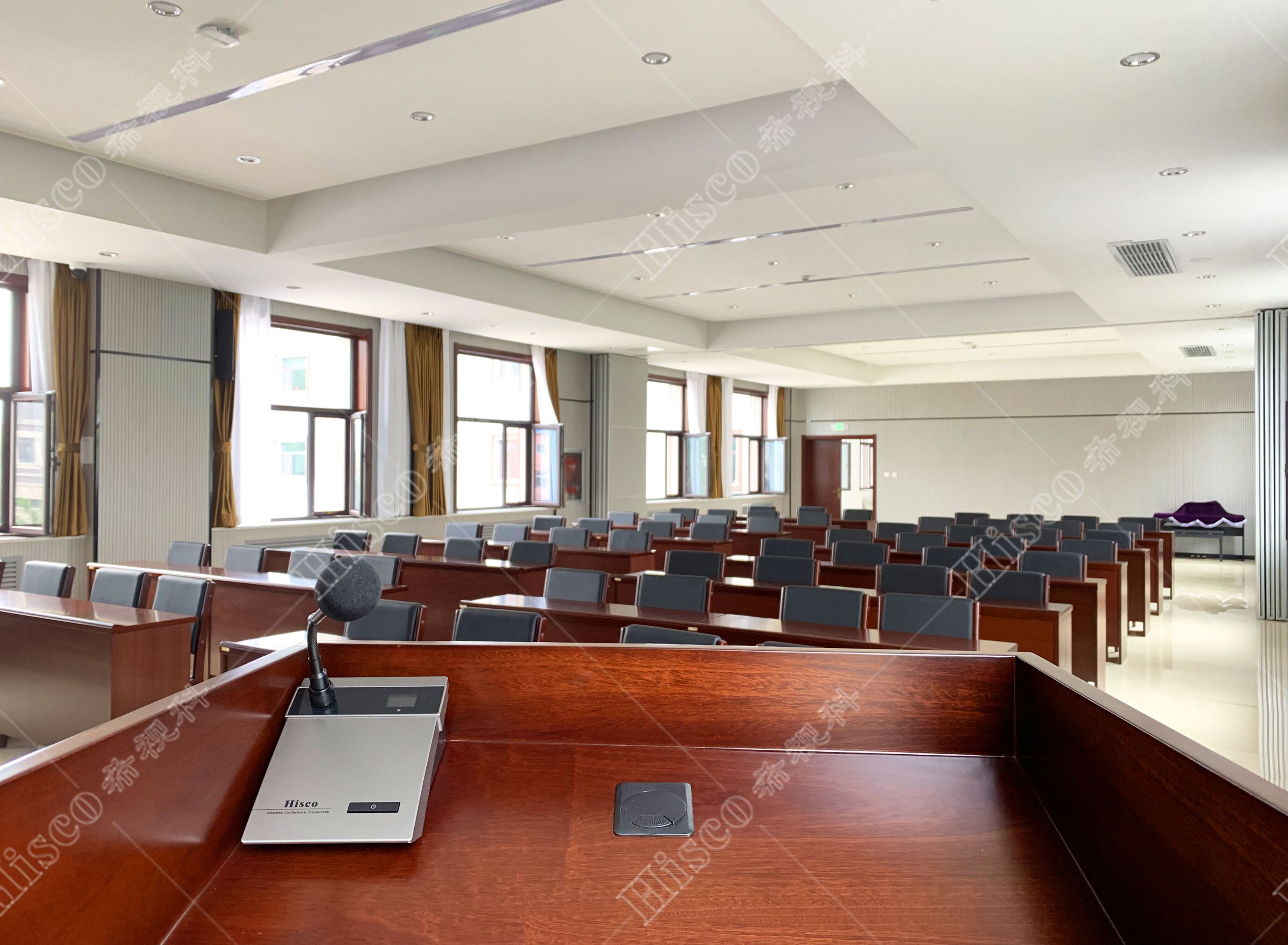 本次项目为政府机关会议室会议系统建设,主要设计了数字会议系统、扩声系统、显示系统、集中控制系统、矩阵系统、无纸化升降等。